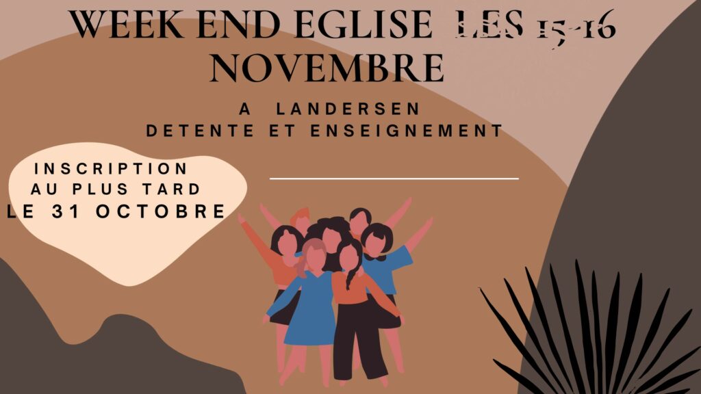 Les moments festifs se poursuivent avec le Week-end d’Église à Landersen du 15-16 novembre ; il sera nécessaire de s’inscrire avant le 31 oct.