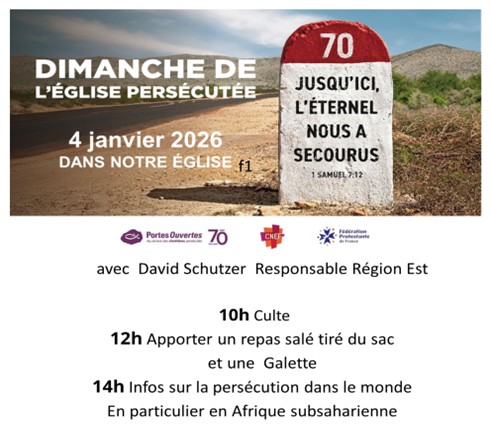 • 04/01 : Dimanche de l’Église Persécutée avec Portes Ouvertes Publié le 4 novembre 202514 décembre 2025 par admin7607